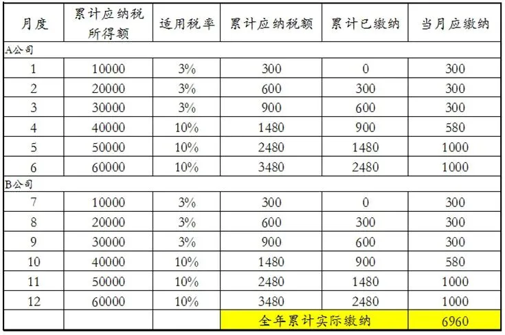 可以看到,小李去了B公司后,累计应纳税额是从头开始计算了,适用3%的预扣率。