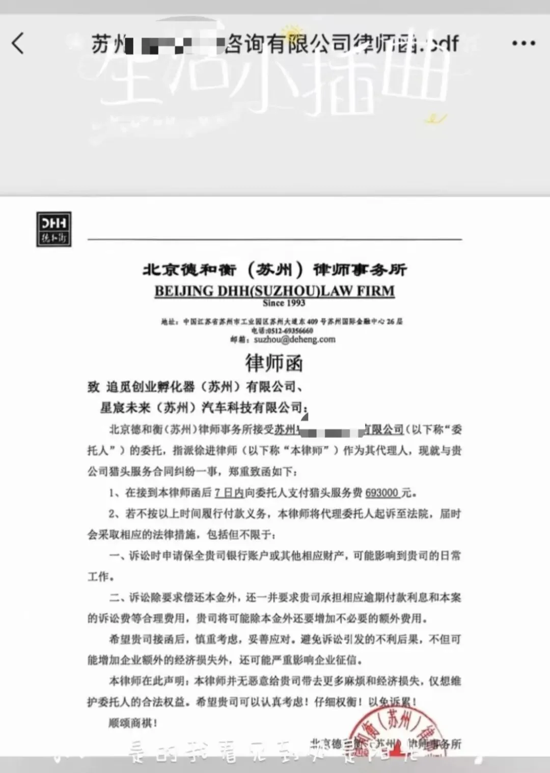 笔记:某新势力车企被发律师函索要猎头服务费,共计693000元