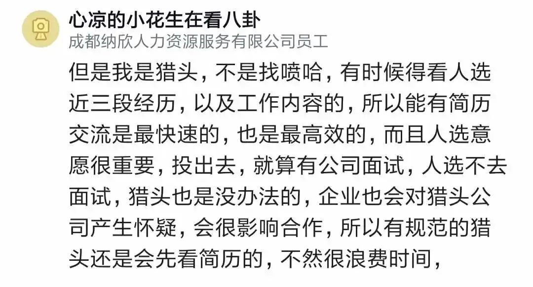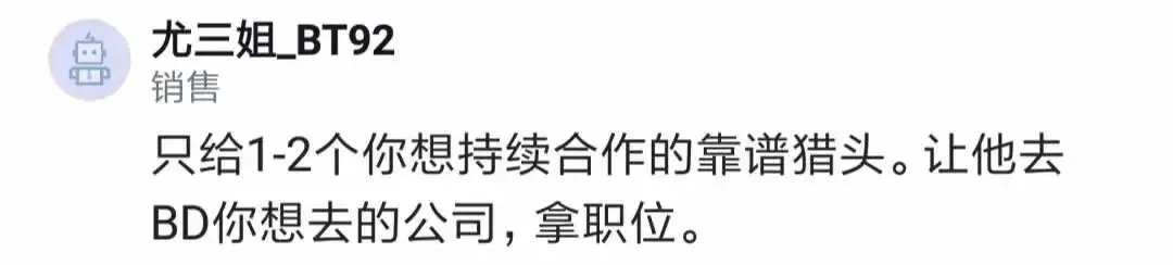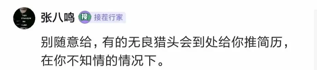还有人说,可以只把简历给一两个想持续合作的靠谱猎头。