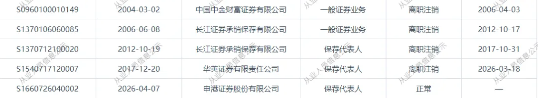 是具有丰富执业经验的保荐代表人,其职业生涯跨越多家知名券商,在A股IPO、再融资及持续督导等多个领域有深度参与。