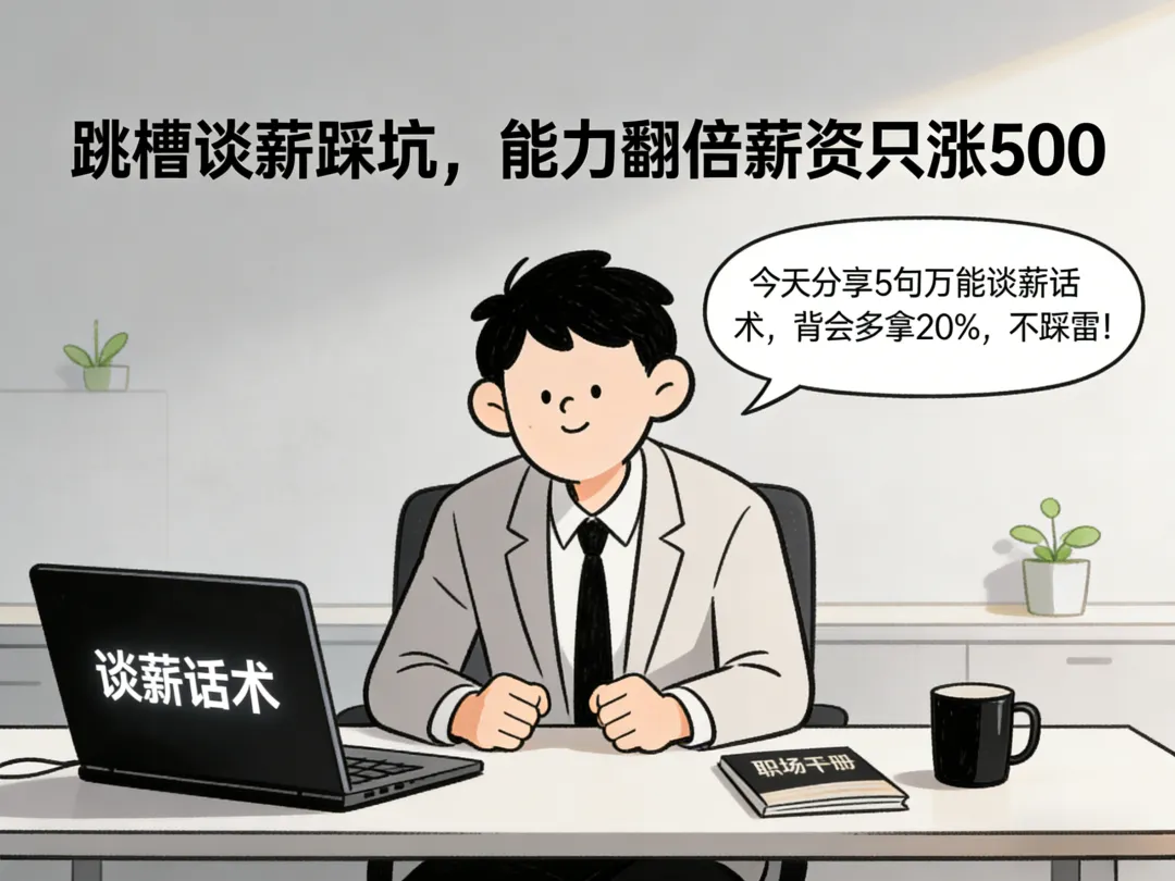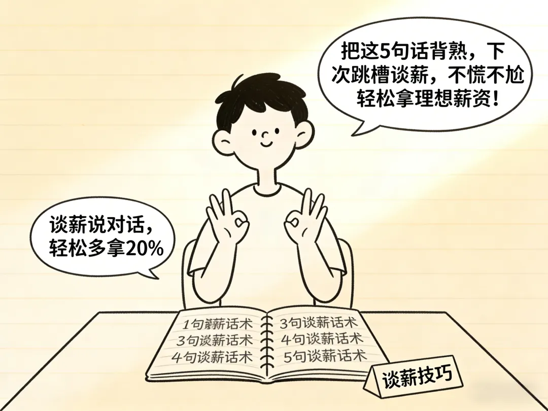 很多人不是不值钱,只是不会说话。跳槽谈薪,话术比能力更重要——你再厉害,不会表达,也会少拿几千块;你只要说对话,就能轻松多拿20%,入职也舒心。把这5句话+示例背熟,下次跳槽谈薪,不慌不尬、不踩雷,轻松谈下理想薪资。福利时间:跳槽谈薪避坑指南,免费领!