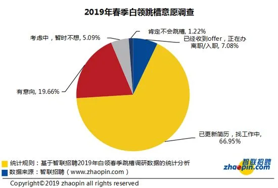 • 2019 跳槽季:超九成白领有跳槽意愿,超七成已经在行动