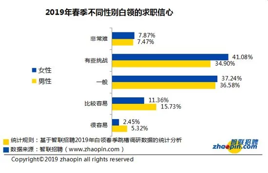 • 2019年春季白领认为求职难度增加
