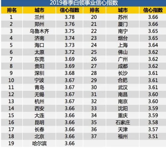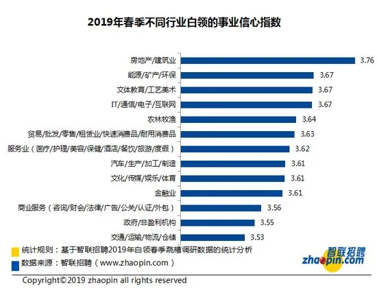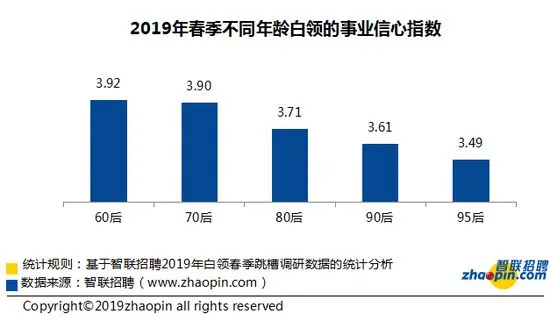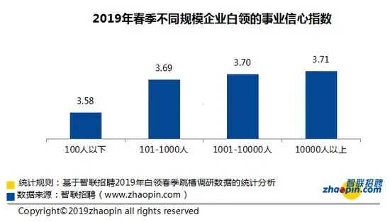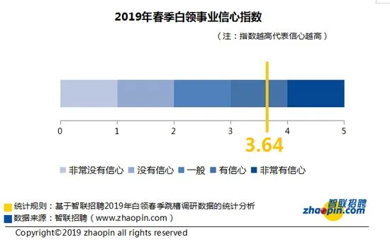 • 2019 年春季白领事业信心指数3.64,较去年有所下降