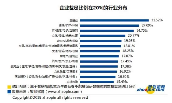 • 超3成白领反映公司有裁员,金融业和互联网最为严重
