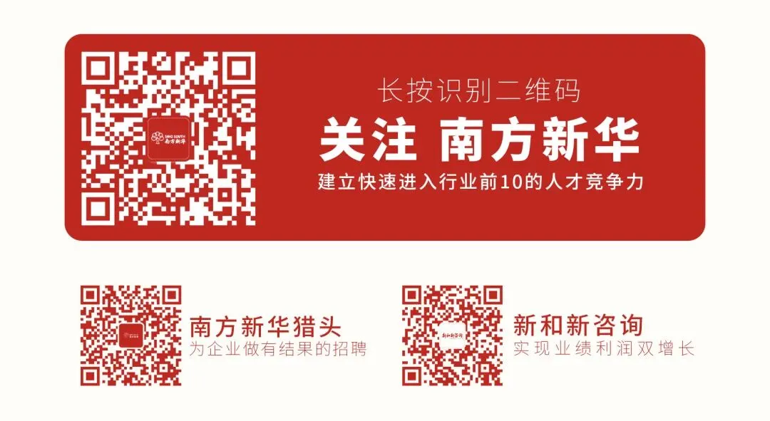 南方新华(SINOSOUTH)--企业全生命周期的人才战略伙伴。我们以“专业猎头服务”与“人才竞争力管理咨询”为双核,将人才战略从顶层设计落地为组织能力。十年来,我们已构建起覆盖企业战略诊断、核心人才配置、组织赋能的全链条服务体系。
