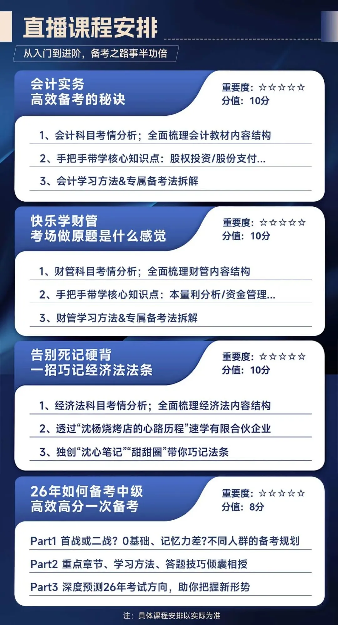 为帮助各位考生顺利的在一年内通过三个科目考试,我们联合知名网校高顿教育,开展《2026年中级会计抢跑训练营》,该课程针对26中会考生完全免费,请各位考生识别下方二维码免费报名参加,由权威名师授课,助力考生1年通过3科。