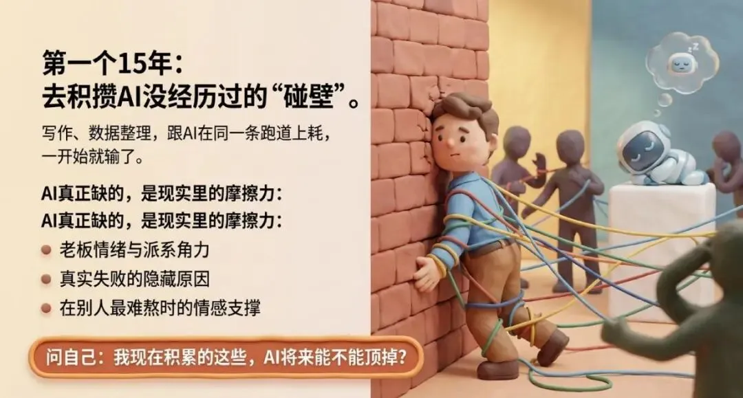 头15年该问自己的只有一件事:我现在积累的这些,AI将来能不能顶掉我。