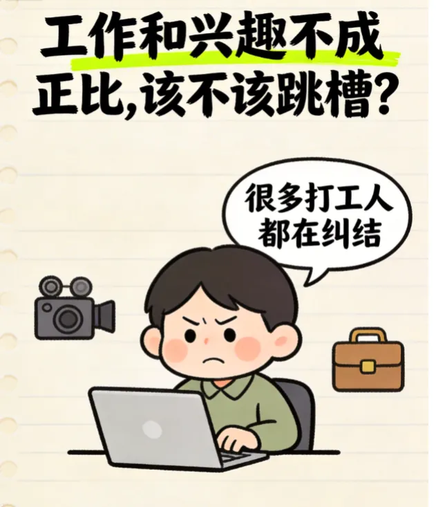 所以,在决定跳槽之前,先静下心来问自己:我讨厌的是这份工作本身,还是“不能做自己喜欢的事”?想清楚这个问题,才能做出不后悔的选择。