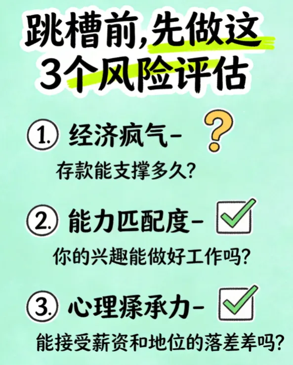 当然,这并不是说,工作和兴趣不成正比,就绝对不能跳槽。如果你经过深思熟虑,确定自己想要跳出当前的圈子,追求和兴趣相关的工作,那么在跳槽前,一定要做好这3个风险评估,避免冲动裸辞,陷入更尴尬的困境。