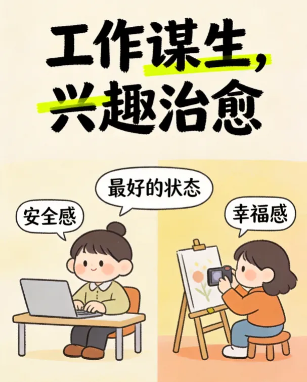 工作给你安全感,兴趣给你幸福感。两者互不干扰,却又相互支撑,这才是最清醒、最可持续的生活方式。