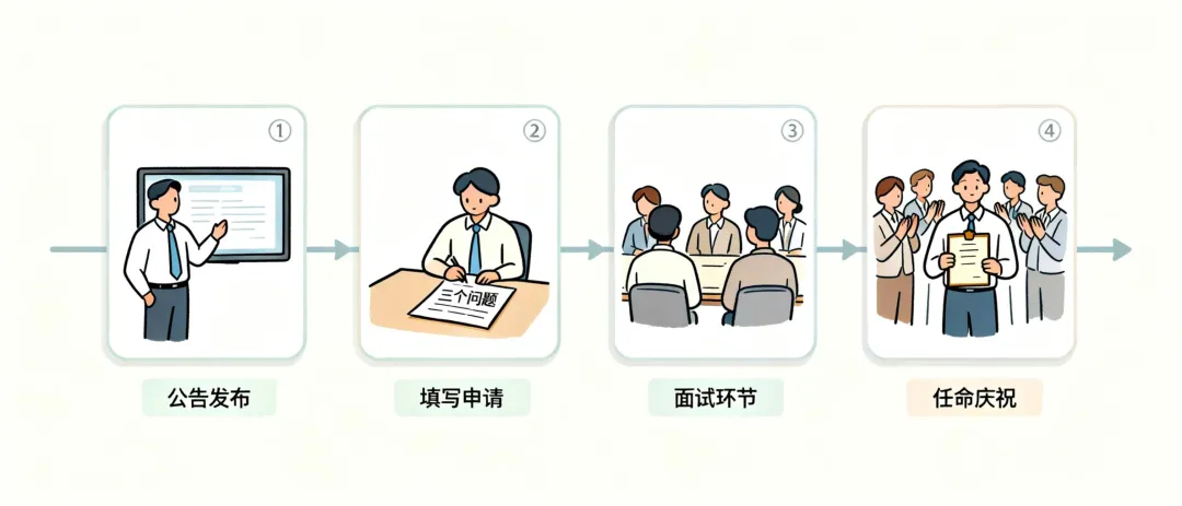 内部竞聘——就是一次性解决这三个问题。它传递的信号无比清晰:我们优先投资于那些已经证明了自己、与我们并肩作战的人。