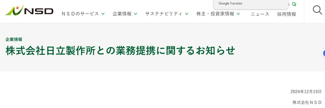 然后,如果考虑去日立,那么可以考虑NSD。NSD并不是日立的子公司,而是一家独立的上市公司,是日立的重要合作伙伴,日立的大量项目,都会与NSD合作来推进。