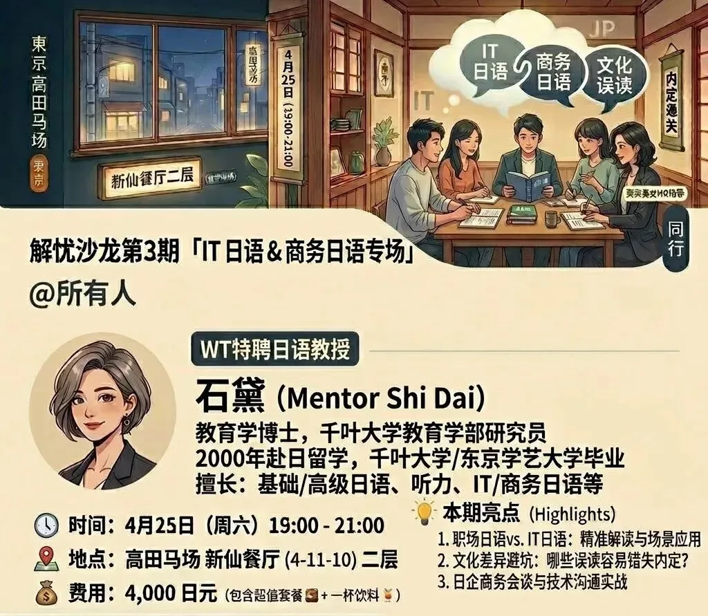 我是在东京开IT公司(北明)的谢社长,提供日本IT求职服务,提供IT、AI和科技产品出海日本对接服务。